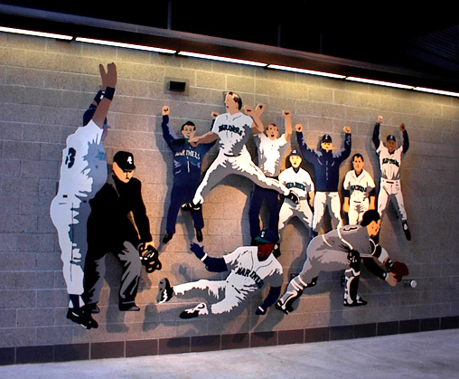 This artwork in the new park commemorates Griffey sliding home with the winning
