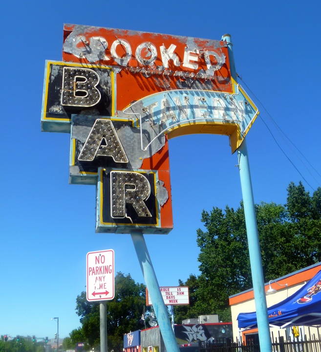 Sign for the Crooked Bar Tavern in 2011 (now refurbished and updated to "Suds")